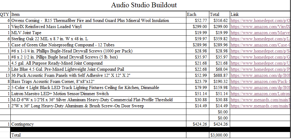 This Member Vote is to complete the infrastructure buildout of the Audio/Podcast/Ham Studio. The items listed below have been identified as supplies needed to complete the studio build with an emphasis on sound attenuation.