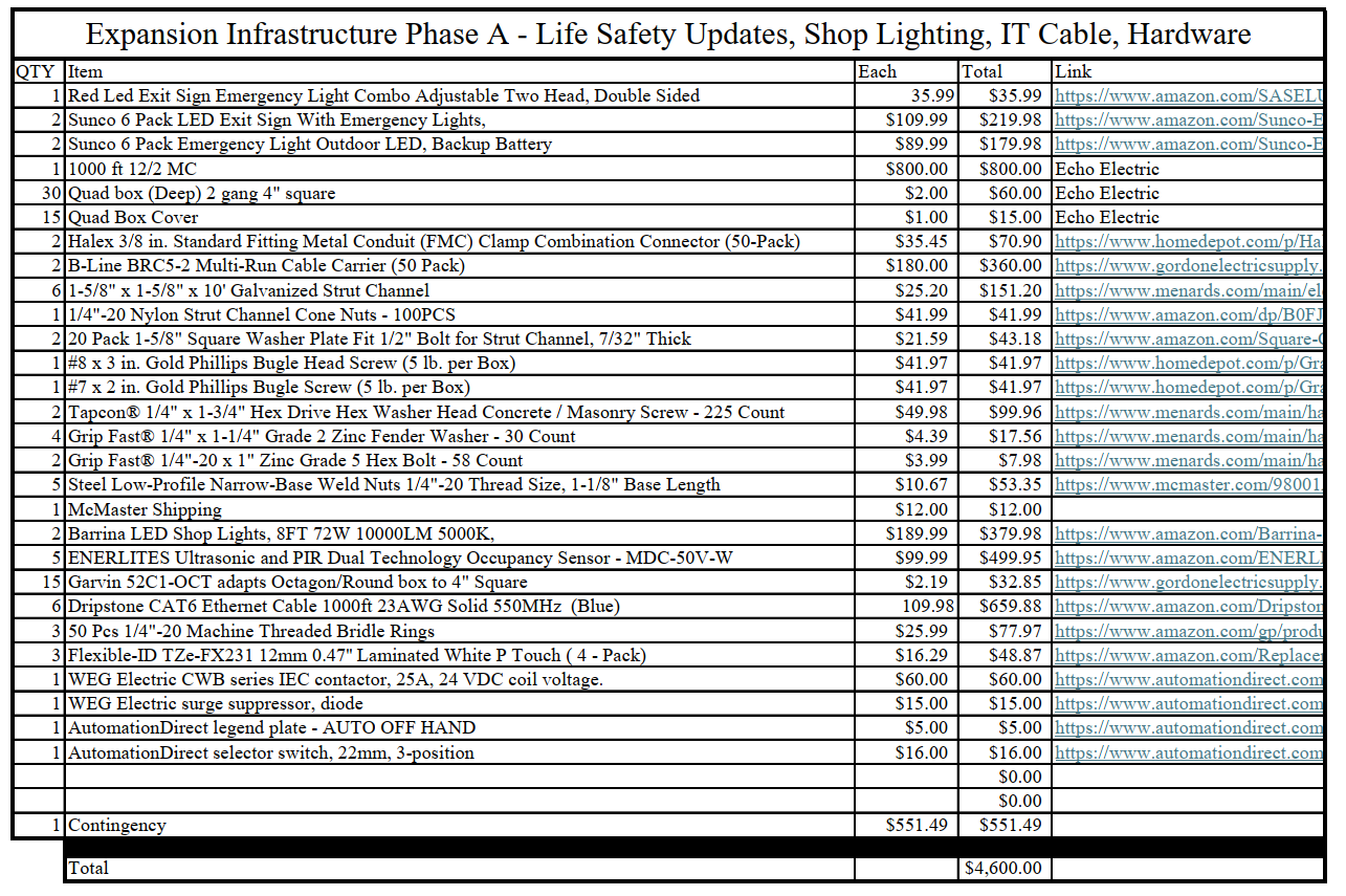 Member Vote for Expansion Infrastructure Phase A - Life Safety Updates, Shop Lighting, IT Cable, Hardware