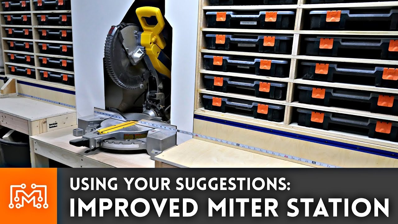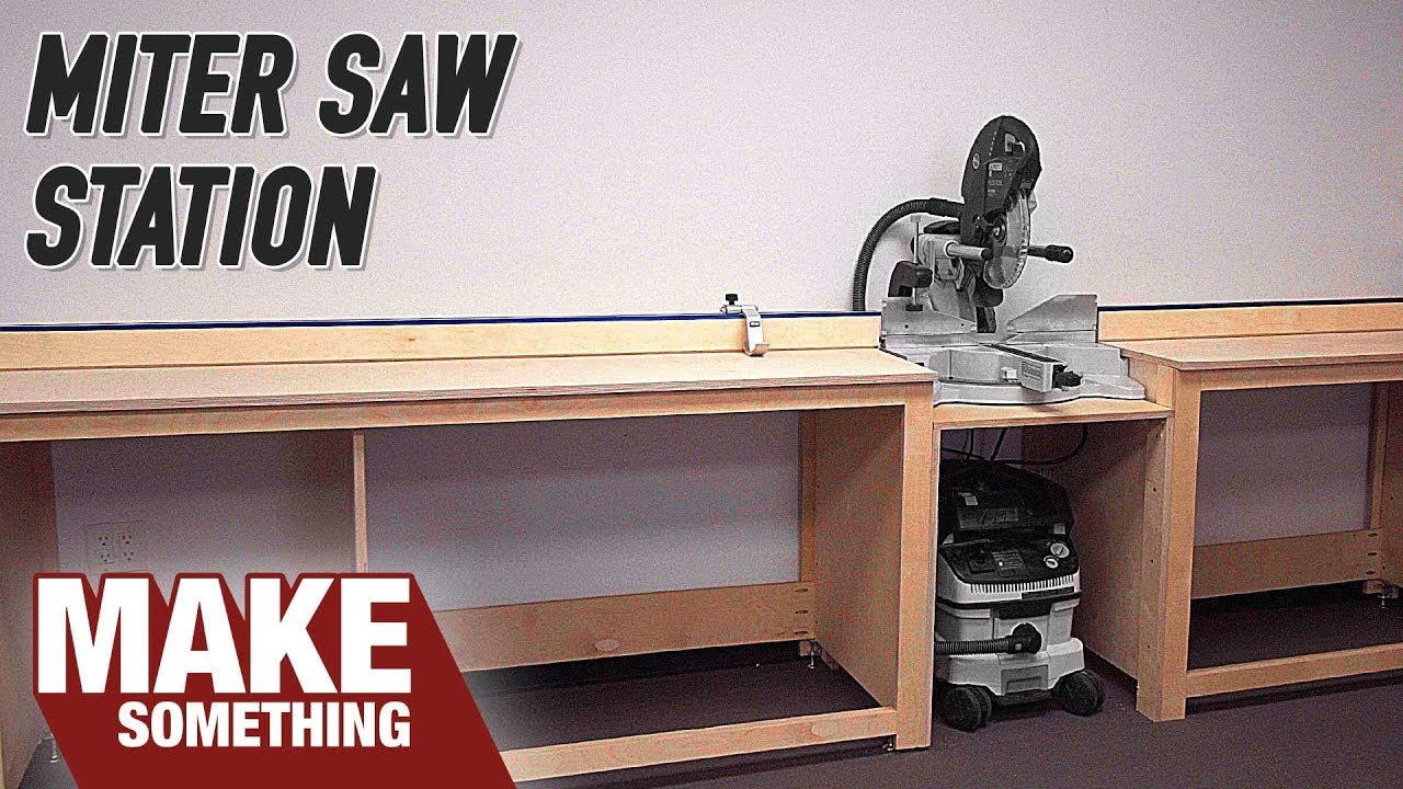 I think this type miter station would really maximize the use of the new saw, as you can just walk up and make the cuts you need without having to worry about setup, adjustment, and then cleanup afterward. The base cabinet construction is also a good strong construction that will be durable and would allow us to add drawers or shelves underneath for storage of tools, blades, consumables, etc.